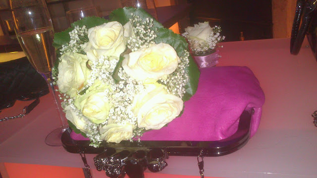 Ainda no jantar, a pessoa que estava ao meu lado mostrava-se muito ansiosa pelo momento do lançamento do bouquet e possivelmente nem reparou na minha total indiferença ao assunto. Já na pista de dança, chegou o dito momento e Maria Calíope estava encostada ao bar e NÃO SE MEXEU. As meninas começaram por se alinhar no meio da pista, mas sabe lá Deus porquê deram uns quanto passos atrás, acabando por algumas estarem muito próximas de mim, quase parecendo que eu fazia parte do grupo. Mas eu continuava encostada ao balcão. A noiva atira o bouquet e ele cai aos meus pés. Eu fingi que não reparei e continuei a assobiar para o lado como se não fosse nada comigo. Entretanto amigos meus devem ter gritado "Calíope apanha!" e eu respondi que não ia apanhar nada. O jeitoso que me tirou depois para dançar, fez a gentileza de apanhar o bouquet e mo dar assim em mãos. Well... pode ser uma parvoíce, mas ali eu não ia ser mal-educada e recebi, agradeci e também fui agradecer à noiva. Estava irritada a tal ponto que foi o único momento nesta boda em que fiquei com os olhos baços. Lembram-se do trauma do